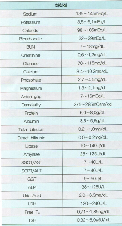 Normal Level 인체 체액의 정상수치 네이버 블로그