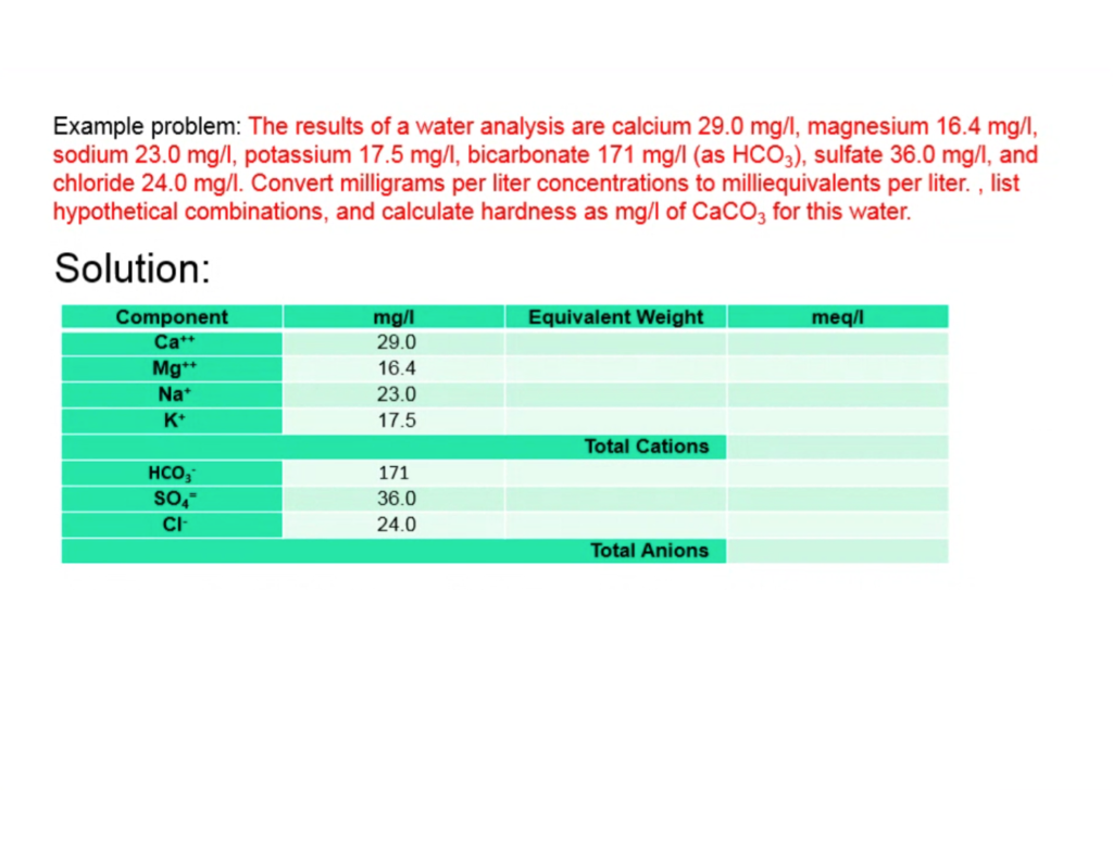 Solved Example Problem The Results Of A Water Analysis Are Chegg Com